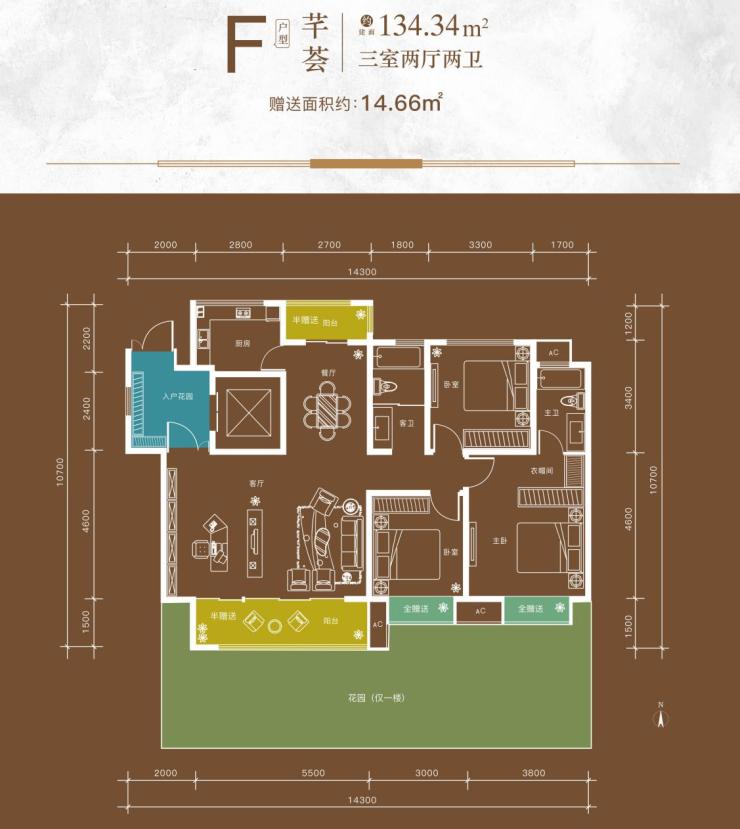 建面约134㎡三室两厅两卫,以均价5900元/㎡,首付30%来算,首付约23.7万,贷款30年,月供约1537元。约134㎡三室,客厅宽约6.4米,名副其实的大横厅设计,主卧和次卧皆是步入式飘窗,增加室内可利用面积,此户型赠送面积高达14.66㎡。