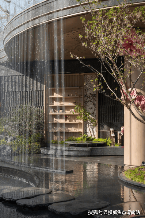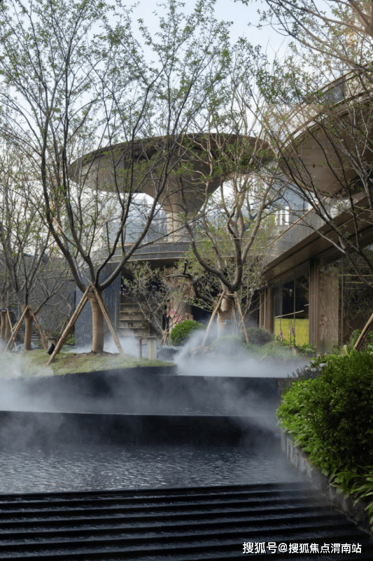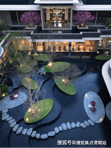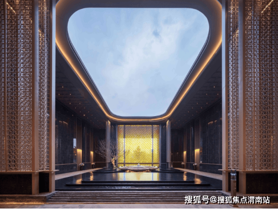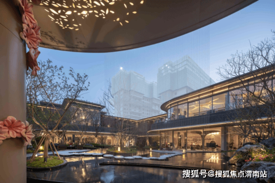开敞的顶部造型——泗水天芯,寓意汇聚天心,纳气聚财。在业主归家途中赏自然的风、光、雨、雪四时景,赏层层叠水步步高升。