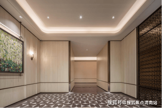 艺术连廊,同样提取了“锦绣丝滑”的流动美学,打造全弧形连廊, 大面积应用了“英国棕”花岗岩石材,不惜成本为打造五星级规划仪式。 花台中央特选“帝王之树”紫薇,象征尊贵与祥瑞,寓意“紫气东来”。