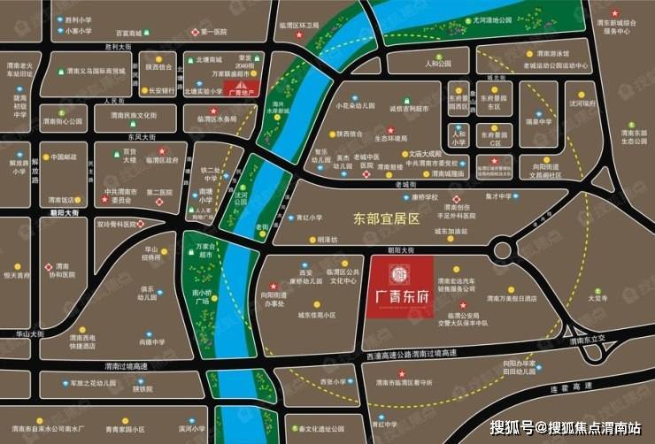 广青东府——傲立于渭南城市轴心地脉,毗邻渭南市委、渭南市党校、临渭政府等机关等单位,占据城市发展中轴。