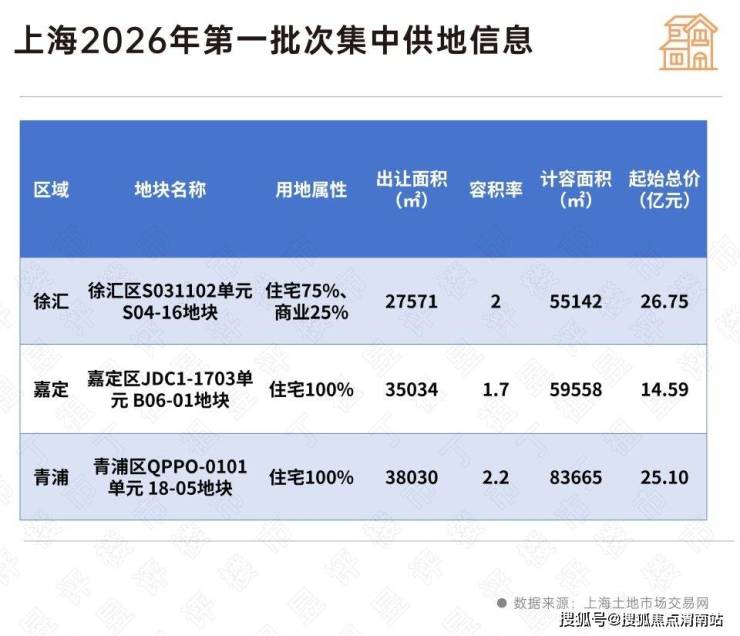 就在1月底,上海已预告2026年首批三宗涉宅用地,地块位于徐汇、嘉定、青浦,总出让面积10.06公顷,起始总价66.44亿元,既有中环内地块,又有低密宅地出让。徐汇长桥板块地块出让底价最高,达到26.75亿元,周边城市界面成熟,各项配套完善,周边新房价格约为11万元/平方米。位于嘉定新城核心区域的嘉定区地块容积率最低,仅1.7,限高40米,准匹配当下改善需求。整体延续“以需定供、精准供地”的供地思路。