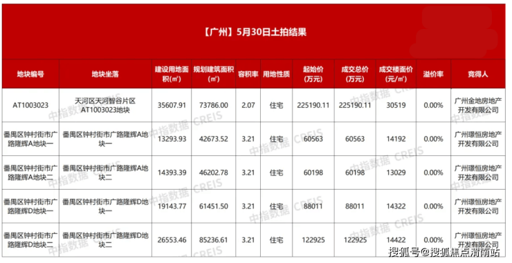 同日,广州出让5宗住宅用地,其中位于番禺区的4宗地块,由民企敏捷集团旗下的广州璟恒房地产开发有限公司以总价33.2亿元竞得,平均成交楼面价14081元/平方米。