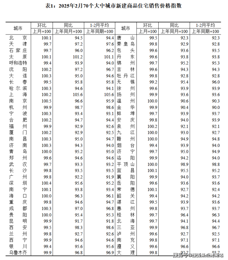 中房网讯 (苏晓/文)国家统计局近日发布的《70个大中城市商品住宅销售价格变动情况》显示,2025年2月份70个大中城市中新建商品住宅和二手住宅销售价格环比上涨城市分别有18个和3个,比上月分别减少6个和减少4个;同比上涨城市分别有2个和0个,与上月均持平。