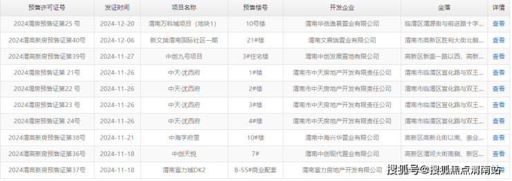 五、渭南楼市上周(2024年12月23日-12月29日)预售证公示信息