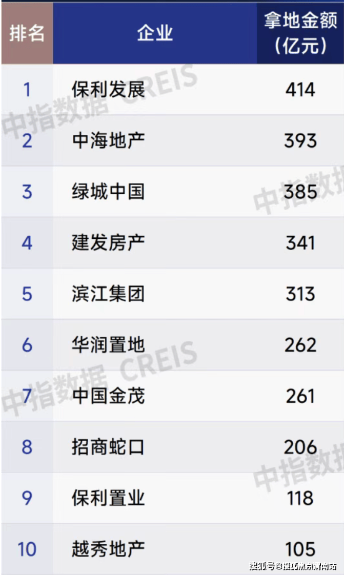 值得注意的是,共有10家房企上半年的权益拿地金额超过100亿元。其中,保利发展以414亿元位居第一,中海地产和绿城中国分别以393亿元和385亿元排在第二位和第三位。