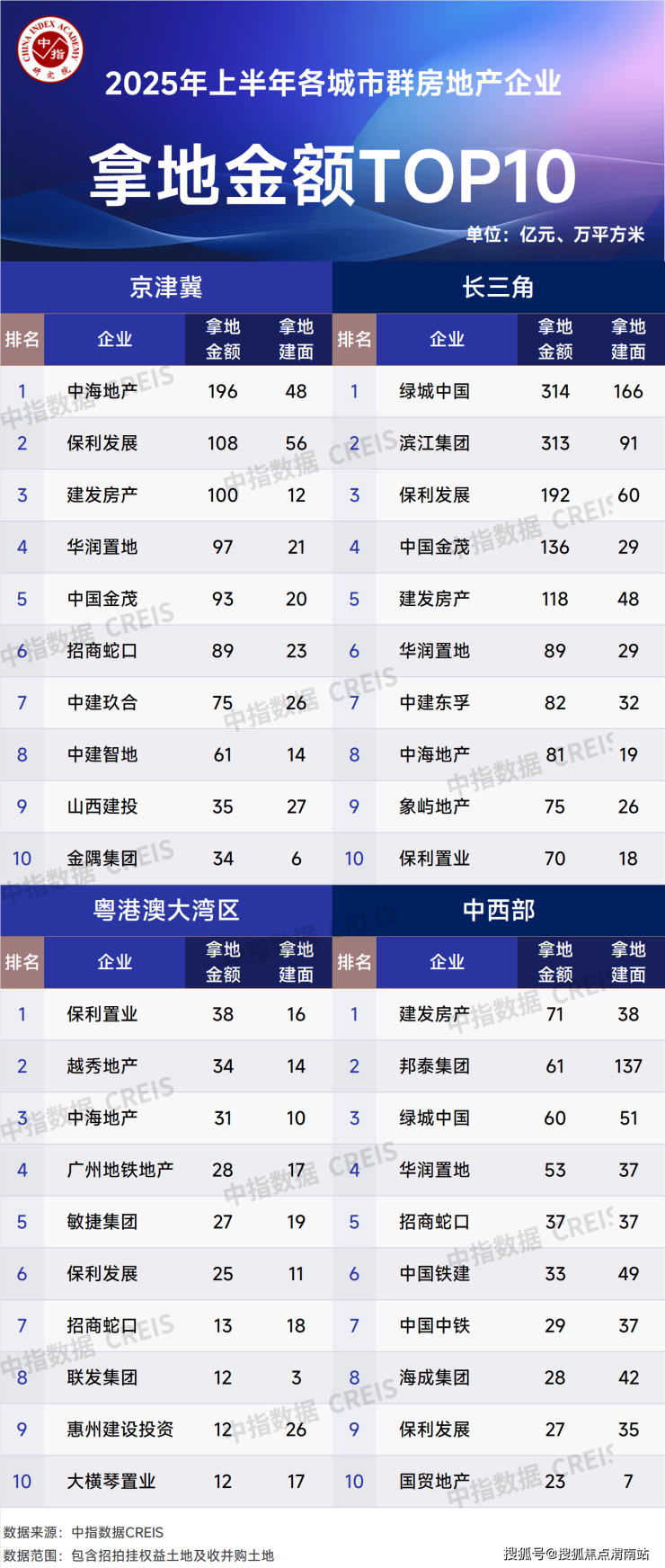 2025年上半年房企权益拿地金额TOP10 来源:中指研究院
