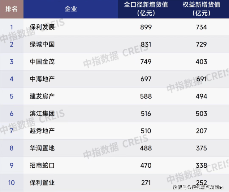 2025年上半年房企全口径新增货值TOP10 来源:中指研究院