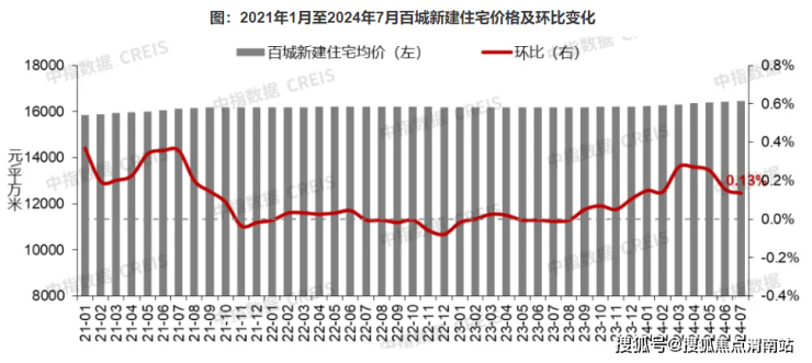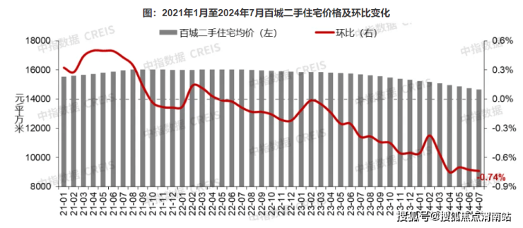 中国房地产指数系统百城价格指数显示,7月全国100个城市新建住宅平均价格为16443元/平方米,环比上涨0.13%,涨幅较6月收窄0.02个百分点。二手住宅方面,以价换量趋势延续,百城二手住宅价格连续27个月下跌至均价14653元/平方米。