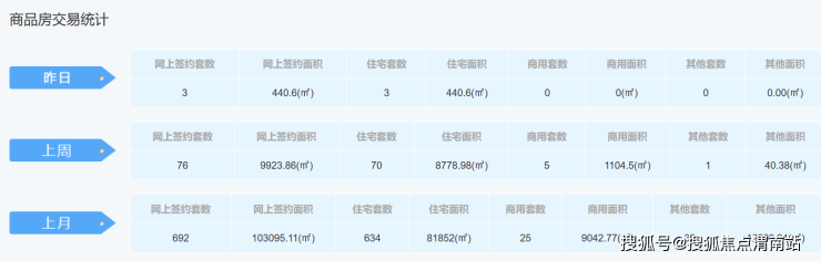 环比上周,总成交上涨20套,其中签约面积上涨3263.26㎡;住宅上涨15套,住宅面积上涨2212.46㎡;商用套数上涨4套,商用面积上涨1104.5㎡;其他套数持平,其他面积下跌53.7㎡。