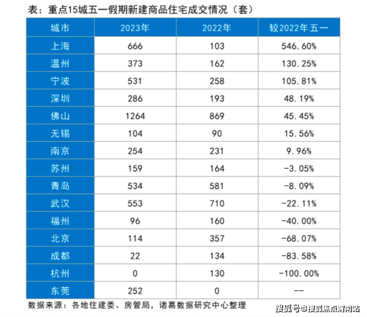 “利好政策频频出台,为楼市成交修复提供保障,是今年五一楼市成交回升的重要因素之一,但出游人数激增对部分城市造成干扰,成交动力稍显不足。”诸葛数据研究中心表示。