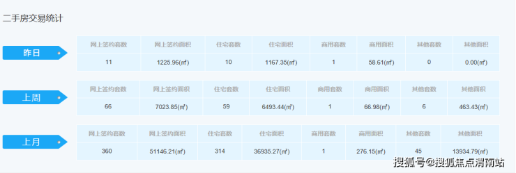环比上周,总成交上涨14套,其中签约面积上涨1232.53㎡;住宅上涨5套,其中面积上涨691.65㎡;商用套数上涨10套,上涨面积624.33㎡;其他套数下跌1套,其他套数面积下跌83.45㎡。