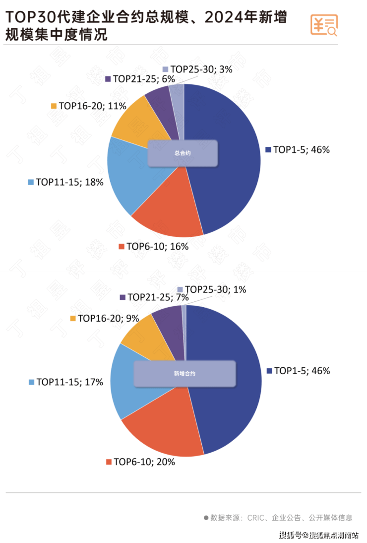 从CRIC发布的《2024年中国房地产企业代建综合能力TOP30》榜中可以看出,2024年综合实力TOP30代建企业总合约面积达到9.14亿平方米,同比增长23%;新增签约面积1.93亿平方米,同比增长6%,其中TOP5企业集中度接近五成。