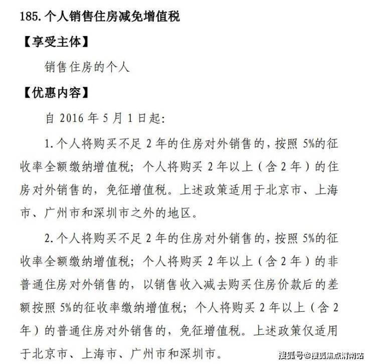对于个人销售住房减免增值税的条件也未调整。即个人将购买不足2年的住房对外销售的,按照5%的征收率全额缴纳增值税;个人将购买2年以上(含2年)的住房对外销售的,免征增值税。对于一线城市而言,个人将购买2年以上(含2年)的非普通住房对外销售的,以销售收入减去购买住房价款后的差额按照5%的征收率缴纳增值税。