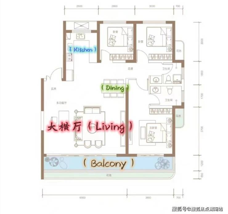 LDKB是指L (Living room)客厅、D(Dining room)餐厅、K(Kitchen)厨房、B(Balcony)阳台。LDKB布局即:打通客餐厅、厨房、阳台之间的非承重墙,让四个空间之间处于流通状态。