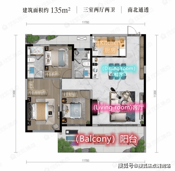 第二,桂语蘭园——还原LDKB宽尺度通透空间,动静分区+大U型厨房