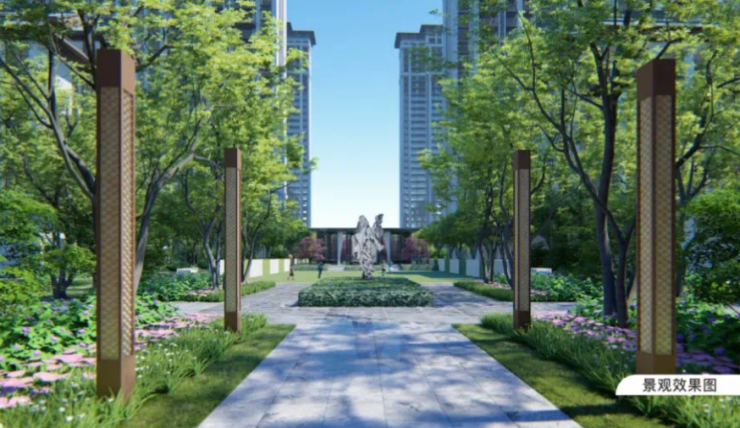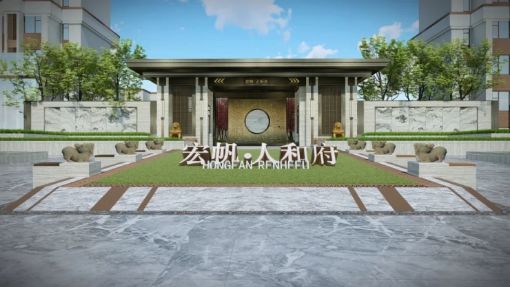 宏帆·人和府社区内,采用三进式宅院礼序,重现古代皇家园林,层层空间递进,形成“一轴一环两支十三节点”的景观格局,以中轴景观、儿童活动区、老人休闲广场、阅读休憩空间、休闲健身空间等打造自然与理想的居住环境;