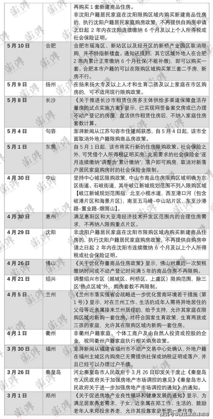 据澎湃新闻不完全统计,今年以来,包括郑州、秦皇岛、福州、衢州、兰州、绍兴、佛山、沈阳、惠州、中山、东莞、句容、长沙、扬州、合肥、沈阳、杭州、湖州、银川、大连、哈尔滨、唐山、无锡、江门、广州、九江、南京、武汉、成都、廊坊、海宁、苏州、西安、济南、青岛、天津等36个城市调整了楼市限购政策。