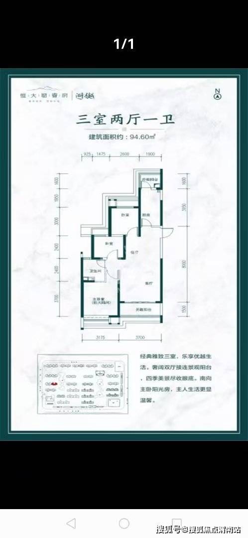 4、恒大珺睿府 三室两厅一卫 精装95㎡ 60万满二可按揭