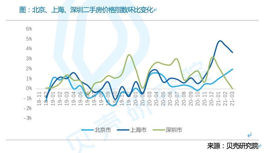 贝壳研究院指出,深圳楼市调控效果显著,“新政周”深圳二手房成交较新政前下降70%,二手房价格指数环比涨幅在1月后持续收窄,至3月止涨;上海一季度二手房成交量环比微降,春节后较春节前下降23%,二手房价格指数环比涨幅连续两个月收窄。