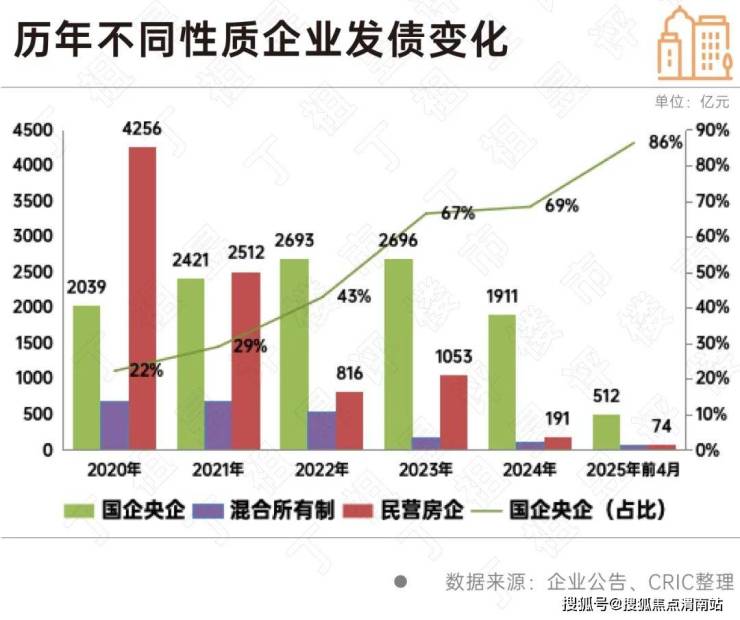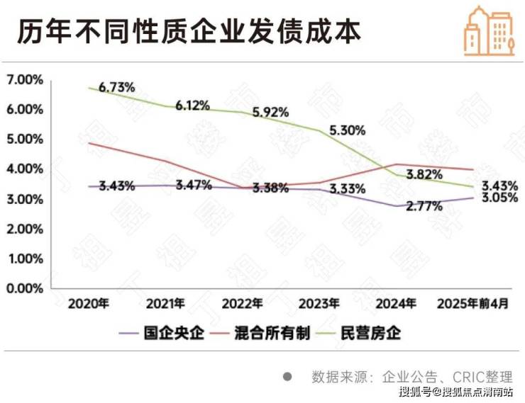 从成本上来看,国企、央企2025年前4月的融资成本为3.05%,而民营企业则为3.43%,两者之间的差距缩减到0.38个百分点;此外混合所有制房企的融资成本出现了较大上升至4%。在当前融资环境下,有用充足抵押物及其他增信措施的优质房企更能够在政策扶持中受益,同时也能够获取更多的低息借款。