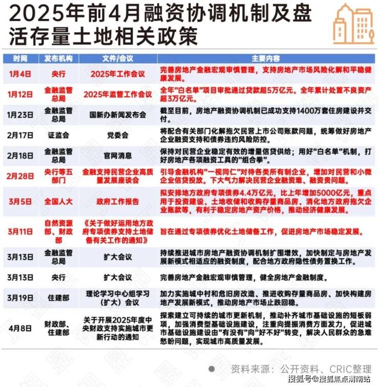 2025年在房地产政策仍然保持宽松的基调下,融资协调机制及盘活存量土地相关政策提速,下大气力解决民营企业融资难、融资贵问题。