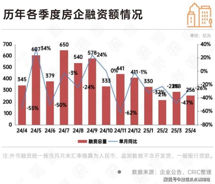 然而从前4月融资情况来看,房企融资仍然呈现收缩态势。2025年前4月,同比下降34%。其中2025年的2月及4月,为过去一年中融资规模最低和次低。多数民营房企,尤其是出险房企,融资难的问题依然突出。
