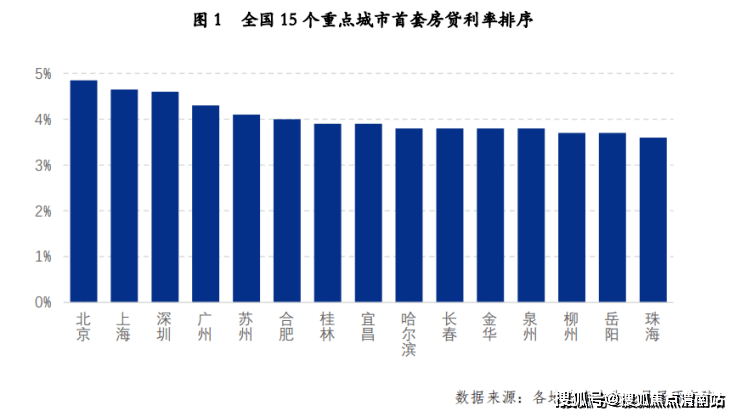 但具体看这15个城市的排序情况,各城市的实际首套房贷利率呈现了较大差异。其中北上深广四个一线城市房贷利率最高,分别为4.85%、4.65%、4.60%和4.30%。而其他城市均低 4.1%的水平。易居房地产研究院统计显示,有9个城市房贷利率低于4%的水平,包括弱二线城市和很多三四线城市。