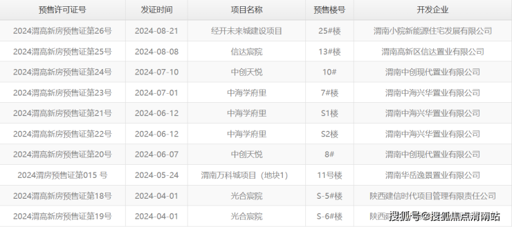 三、渭南楼市8月预售证信息