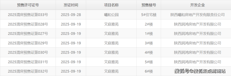 五、渭南楼市上周(2025年9月22日-9月28日)预售证公示信息
