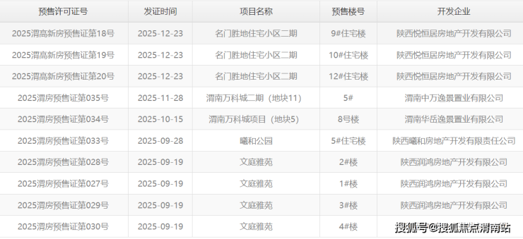 五、渭南楼市上周(2026年1月5日-2026年1月11日)预售证公示信息