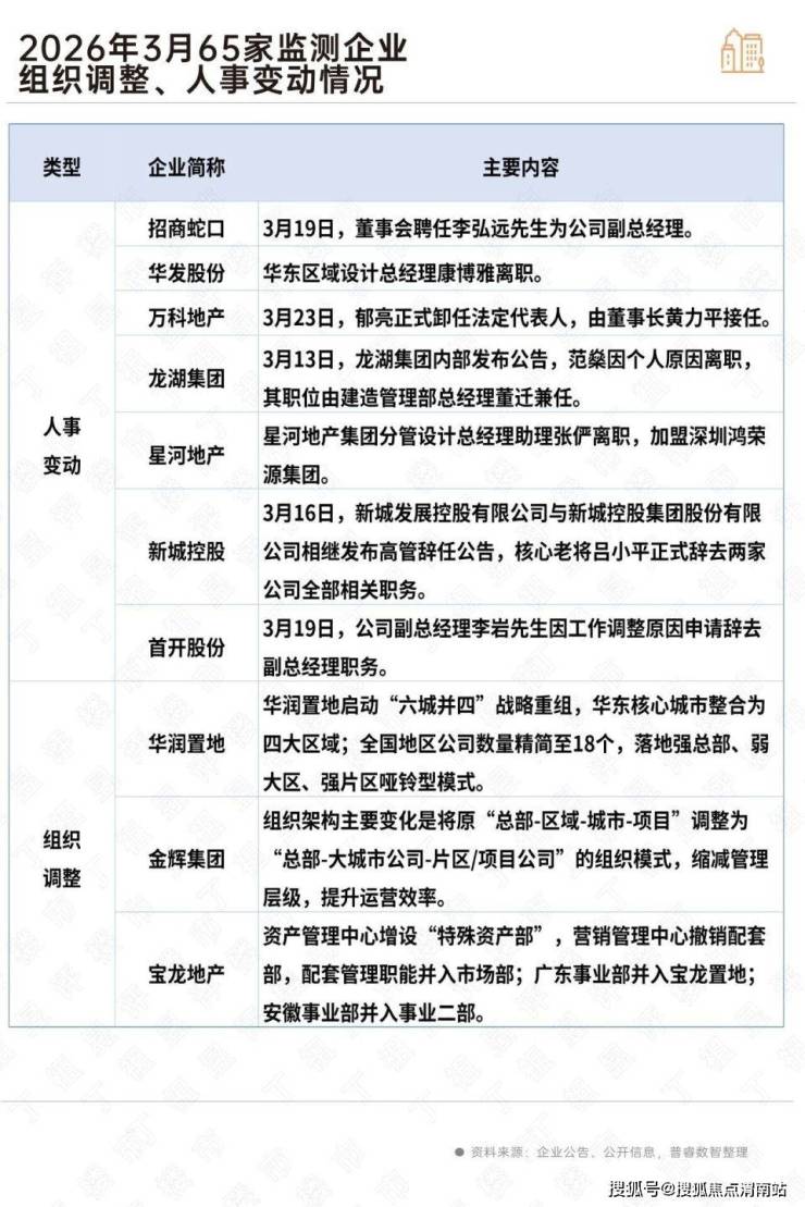 在行业降本增效的大背景下,除了薪酬体系重构,2026年1月以来,头部房企以“管理层优化、架构扁平化、降本增效”为核心方向组织架构变革和管理层人事更替仍在持续。