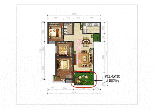 对于刚需购房群体来讲,约107㎡的三室户型面积适中,且功能区域合理设计,这是该户型被三口之家广泛选择的一大因素。另外,户型设计上也尽力考虑到小三室的空间感,LDKB一体化设计(餐、客、阳台一线连接),推门入户的第一印象便是空间感十足,让小三室更显宽敞,南向约2.4米宽、L形采光面阳台设计,可集结休闲赏景、洗衣、收纳等多重功能,让小家井然有序。