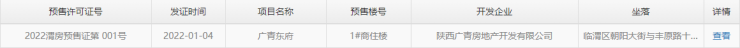 渭南楼市上周期间无预售证取得,最近期(2022.1.3-2022.1.16)预售证信息如下: