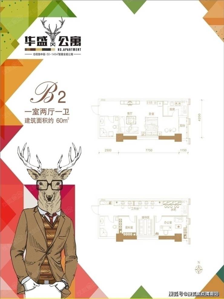 华盛公寓户型:约60㎡1室1厅1卫