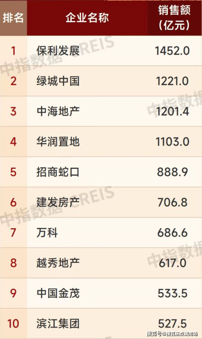2025年上半年房企销售额TOP10 来源:中指研究院
