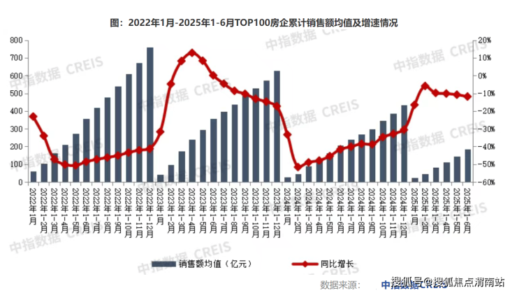 中指研究院数据显示,今年上半年,百强房企累计销售金额约1.84万亿元,同比下降11.8%;6月单月,百强房企销售额同比下降18.5%。