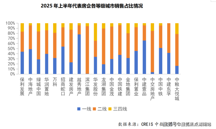 具体来看,招商蛇口、越秀地产、中建壹品、中国中铁深耕一线城市,来自一线城市的销售贡献率均超过50%;保利发展、中海地产、华润置地、保利置业、中建东孚等房企,来自一线城市的销售贡献率均超40%。