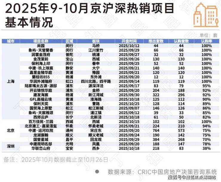 从9-10月京沪深三城热销项目来看,热销盘除了主要集中在各城市供应稀缺核心区域的改善盘之外,还有部分折扣力度较大的刚需盘,居民购房更多会权衡区位配套、产品、价格等综合因素,强调极致性价比。