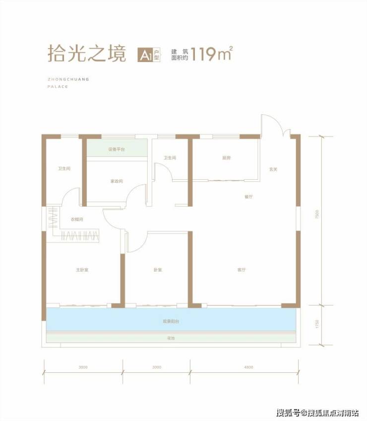 中创·天悦 约119㎡三室两厅两卫居然做了11.3米的阳台、4.8米宽的客厅。再加上3面朝南、采光通风俱佳。除此之外最重要的,主卧竟然还是带衣帽间设计。