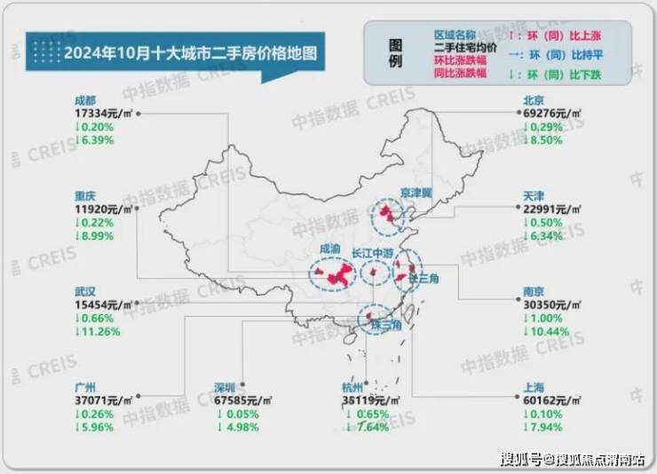 图:2024年10月十大城市二手住宅挂牌均价及环同比
