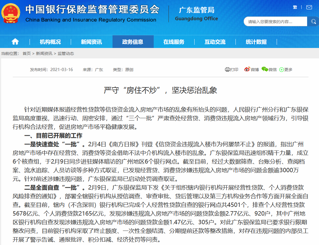 3月16日,广东银保监局和中国人民银行广州分行发布了一组数据,让人们感觉到这次楼市整顿的决心。