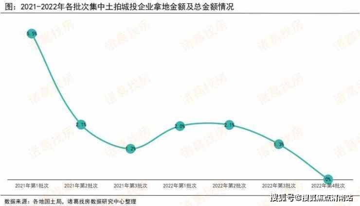 在2021年第二批次土拍规则收紧下,多数民营企业未经受住考验,加之市场调控收紧,房企在融资端、销售端等面临多重压力,拿地热情减退,城投企业逐渐进入拿地主角行列,至2021年第三批次,城投企业拿地占比超4成,且创年内三批次占比新高。进入2022年,起初在楼市信贷端持续释放改善信号的带动下,品牌国央资企业热情居高,城投拿地金额占比短暂回落,随后在房企销售端持续承压,资金面未见好转下,国央企频繁拿地的底气也逐渐下降,为维持一定的土拍温度,避免过度流拍,城投企业再次加速入场,且逐渐开启托底模式,直至今年第四批次,城投企业拿地占比近半,且创去年以来7个批次的占比新高。根据诸葛找房数据研究中心监测国土局数据显示,2022年第四批次集中土拍城投类企业拿地金额占比49.14%,较去年第三轮41.1%的次高峰占比上升8.04个百分点。