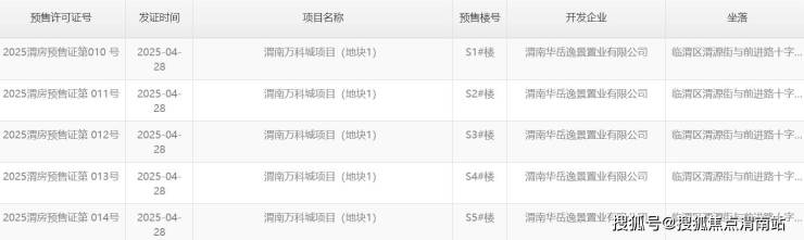 渭南楼市上周(2025年4月28日-5月4日),渭南万科城S1#楼、S2#楼、S3#楼、S4#楼、S5#楼120套商铺获得预售证,以下是近期预售证公示信息。