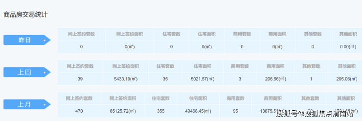 环比上周,总成交持平39套,其中签约面积上涨165.19㎡;住宅持平35套,住宅面积上涨789.03㎡;商用套数持平1套,商用面积下跌18.81㎡;其他套数下跌2套,其它面积上涨24.35㎡。