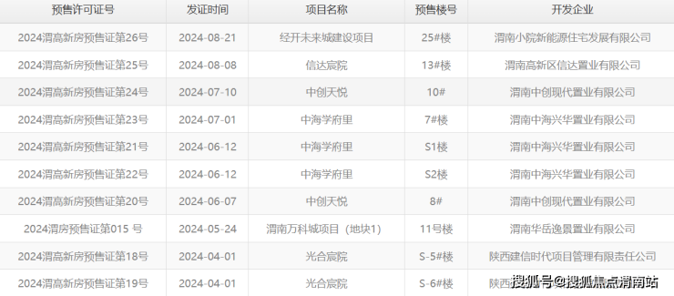 五、渭南楼市上周(2024年9月2日-9月8日)预售证公示信息