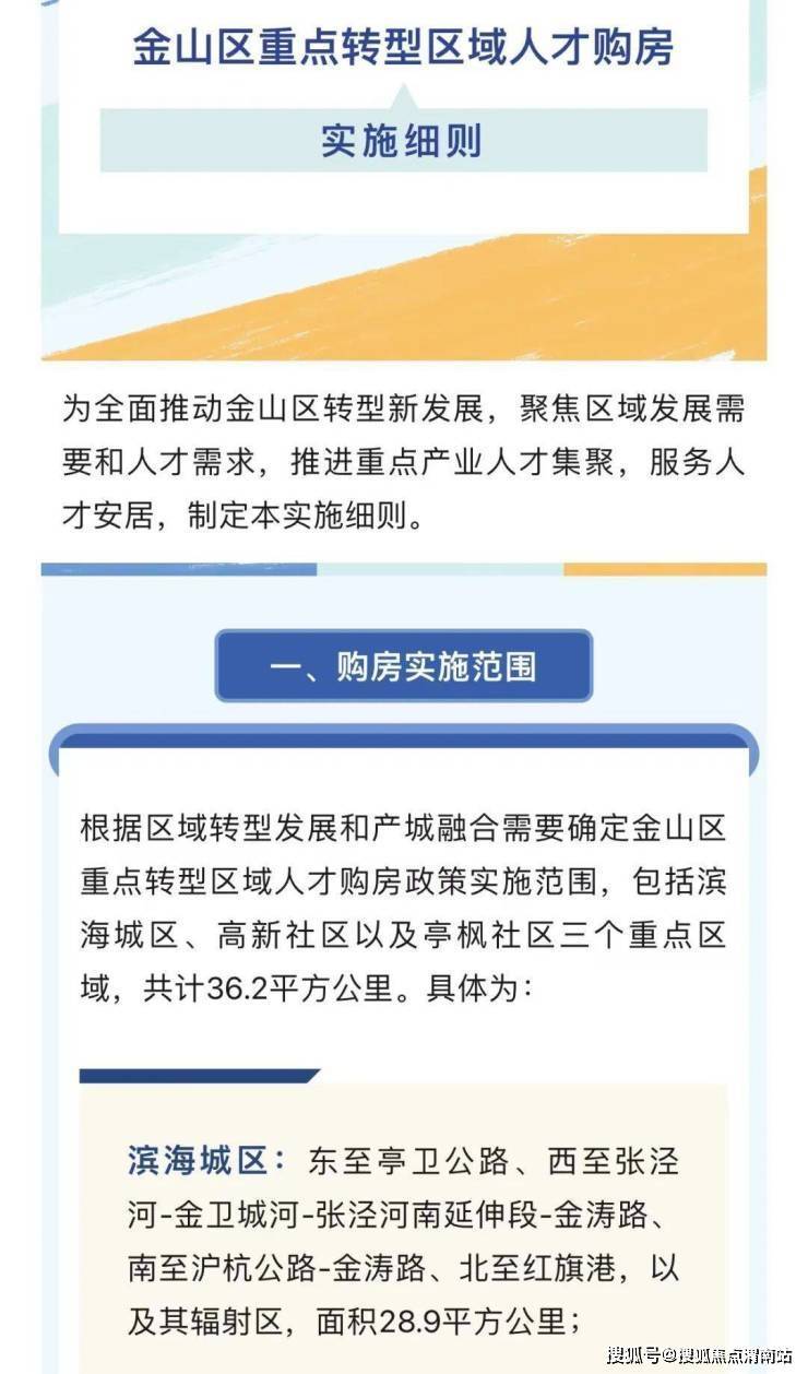 10月24日,上海市金山区发布的《金山区重点转型区域人才购房实施细则》中提出,在滨海城区、高新社区以及亭枫社区三个重点区域实施重点转型区域人才购房政策。