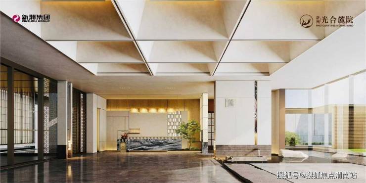 新洲·光合麓院以南京涵碧楼、青普文化行馆等顶级酒店为灵感蓝本,提炼出“气质、艺术、度假、自然”四重设计维度,从门头到院落,每一处细节都遵循“藏风聚气”的东方格局:项目主入口采用“门头内高外低”的格局,五步台阶寓意“连升五级”,配合宇宙黑奢石与水景琉璃幕墙,夜幕降临时,灯光流淌如星河,将归家仪式升华为艺术观览。次入口借鉴酒店车马前厅概念,通过人车分流设计与叠涩内凹门头,营造港湾般的归属感,细节中处处彰显“隐奢”质感。