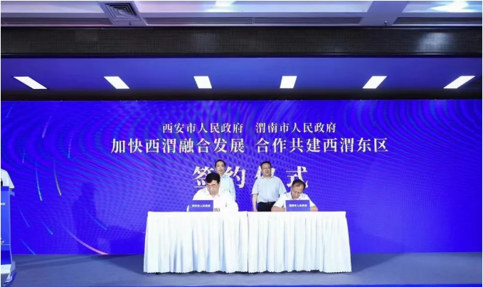 6月7日,由西安市人民政府、渭南市人民政府主办的西渭融合发展合作共建西渭东区签约揭牌仪式在渭南财富大厦举行。
