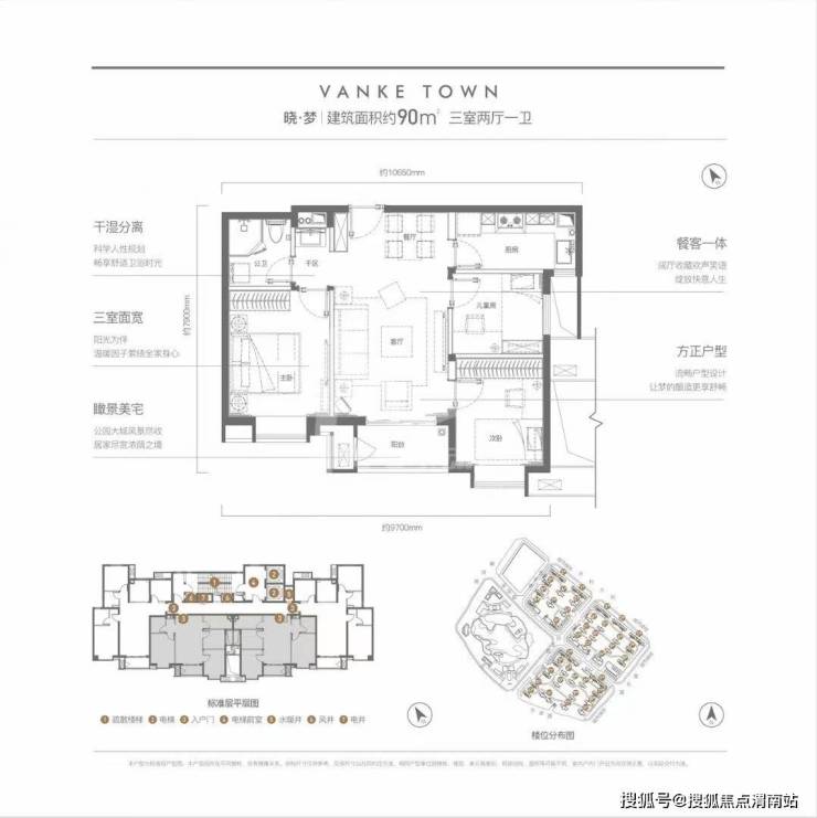 2、万科城沁园 90㎡三室两厅一卫 精装 65万满二可按揭