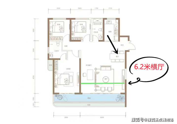 排名前列,阔绰餐客双厅:6.2米南向横厅设计